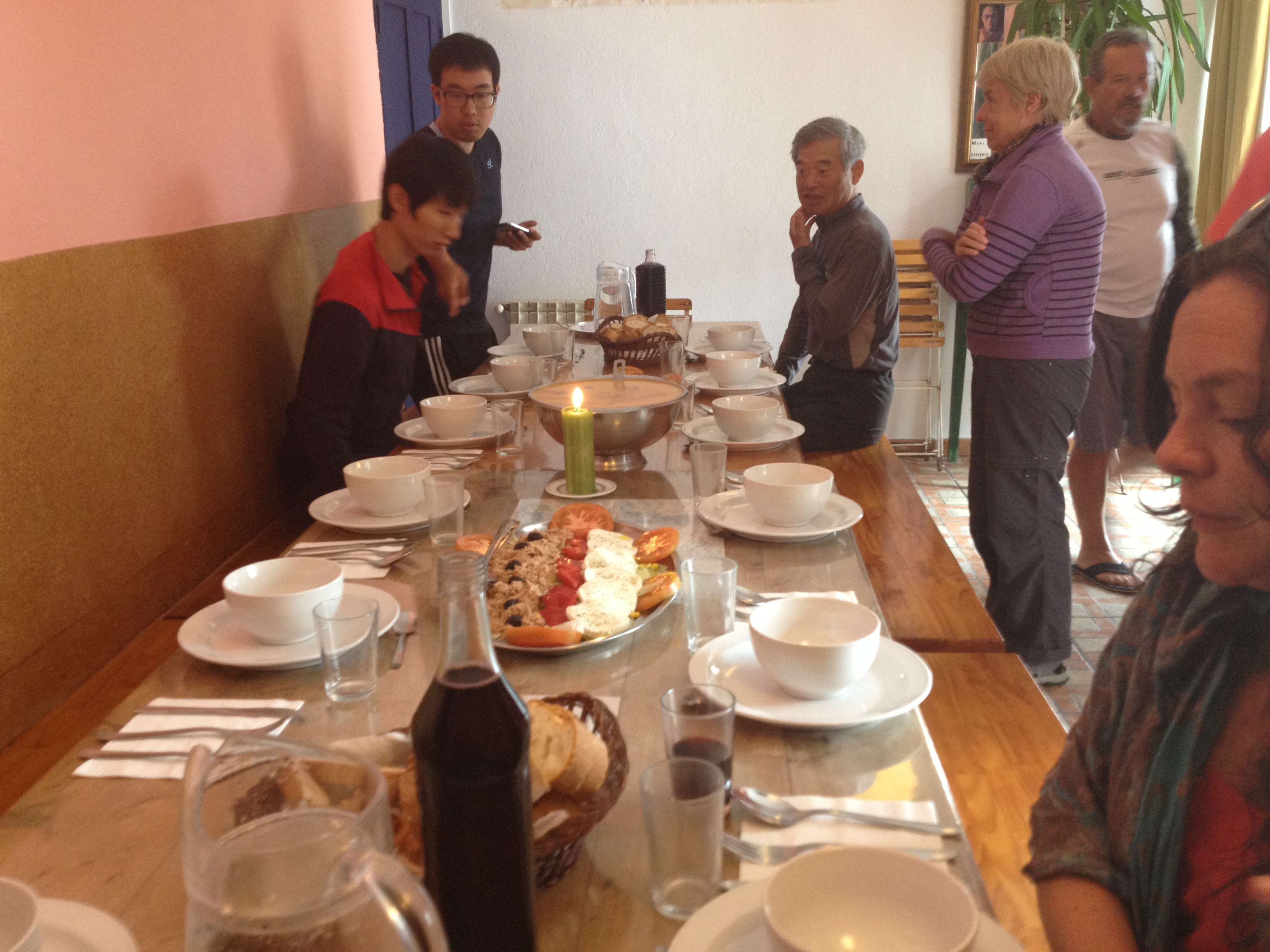 Dinner is cooking at our Albergue and smells yum. Home cooked by Carlos. Time to eat!