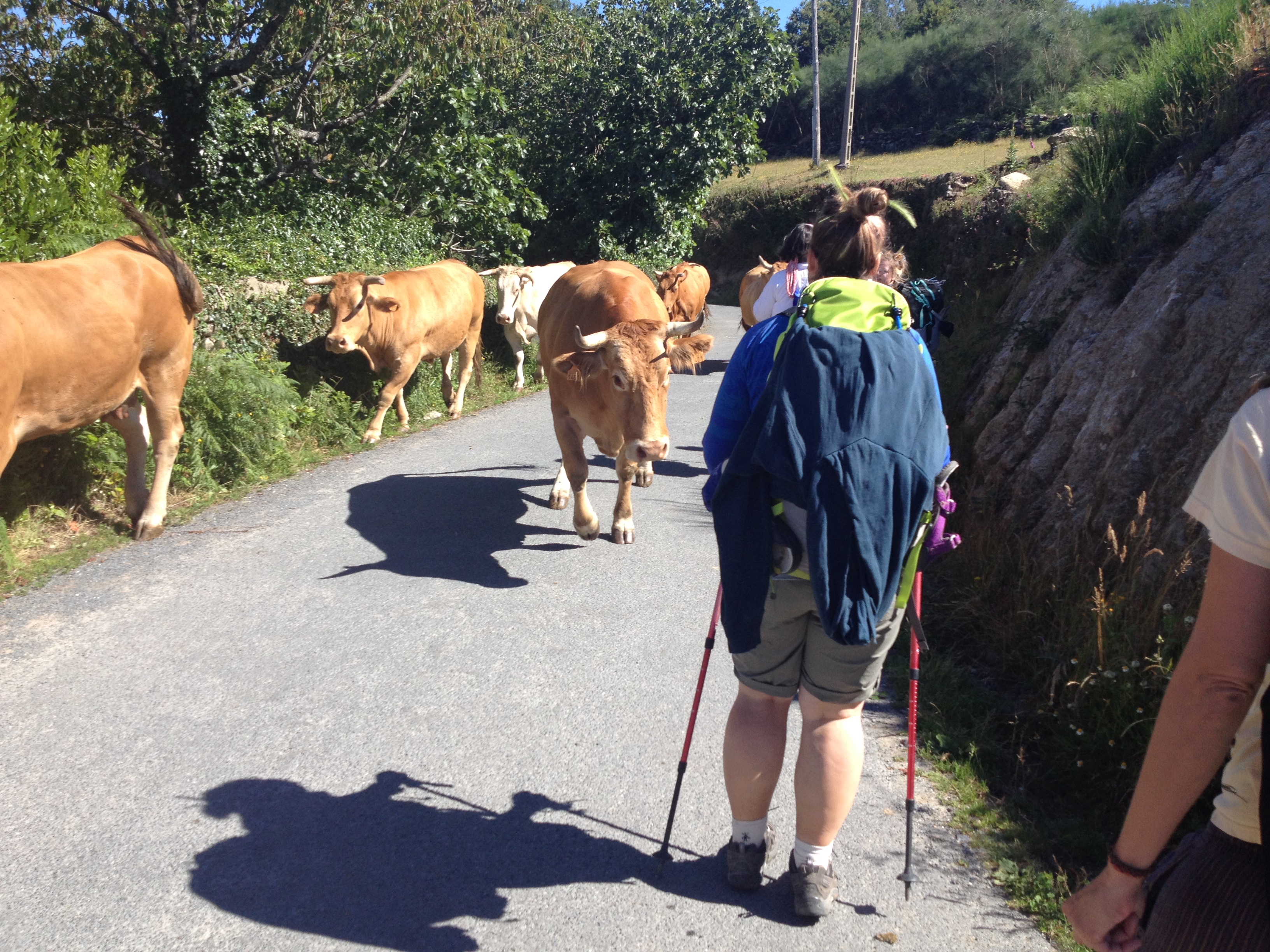 On a serious note, today we also ran with the Cows. As we were walking, twice we had to thread our way through small herds of Cows on the Camino as we made our trek to Portomarin a town with links to the Knights of Saint John.