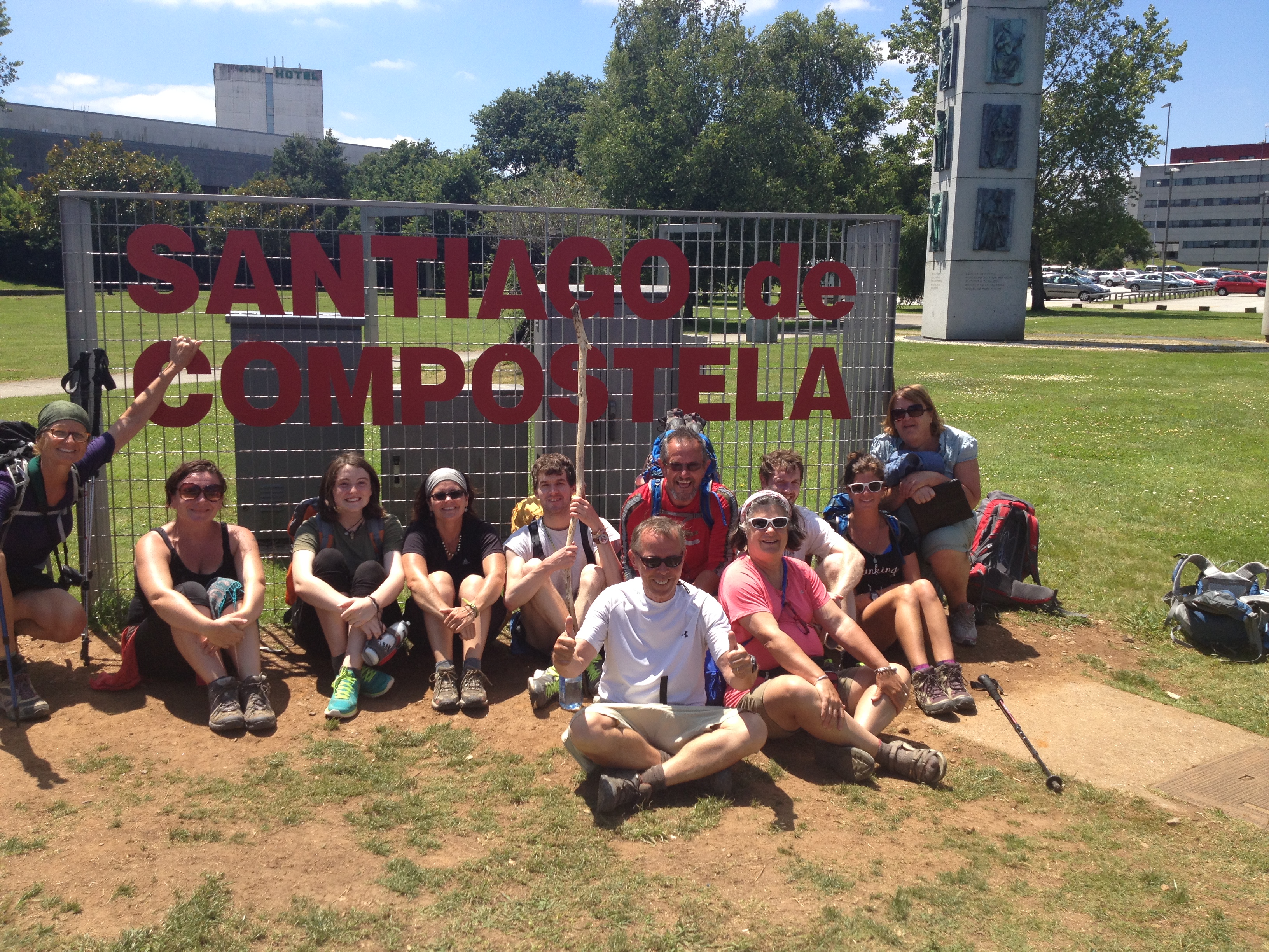 The CIA tribe arriving in Santiago – Back row L to R JoAnn from Maine, Sheyna and daugher from Ireland, Kim Everett from Boston, Paul McGettigan from N Ireland, Michael Faulker from Canada, Seamus Campbell from N. Ireland, Jessica Falkner from Canada, Sheyna’s Mom. Morgan and I in the front